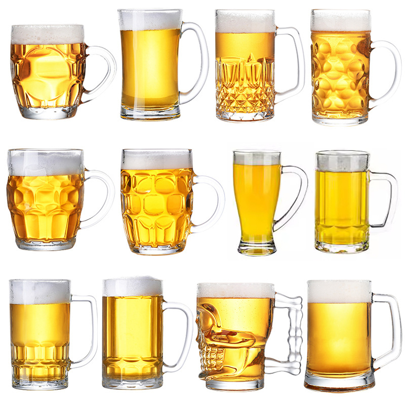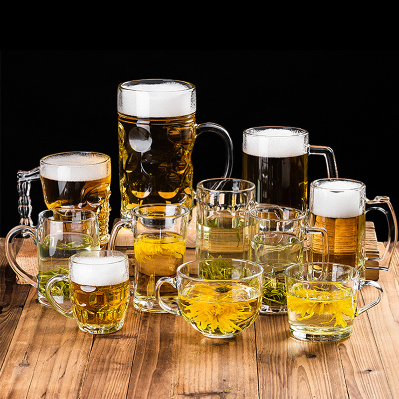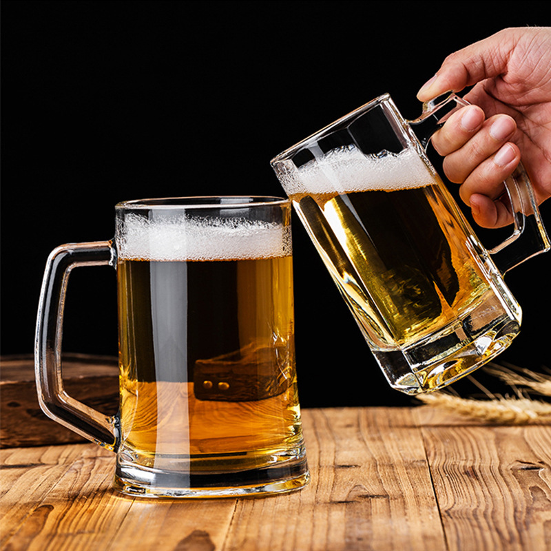 Glass Mugs With Handle, Beer Glasses For Freezer, Beer Drinking Glasses, Traditional Stein For Bar, Alcohol, Beverages,Coffee, Teas